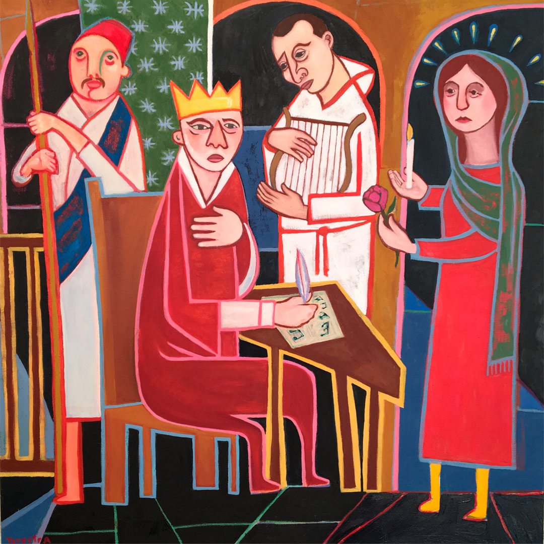 January 16–February 21, 2020Troy Terpstra borrows fragments of imagery from TS Eliot, Leonard Cohen, and Psalms of both praise and lament in this largely figurative and fractured series of paintings.